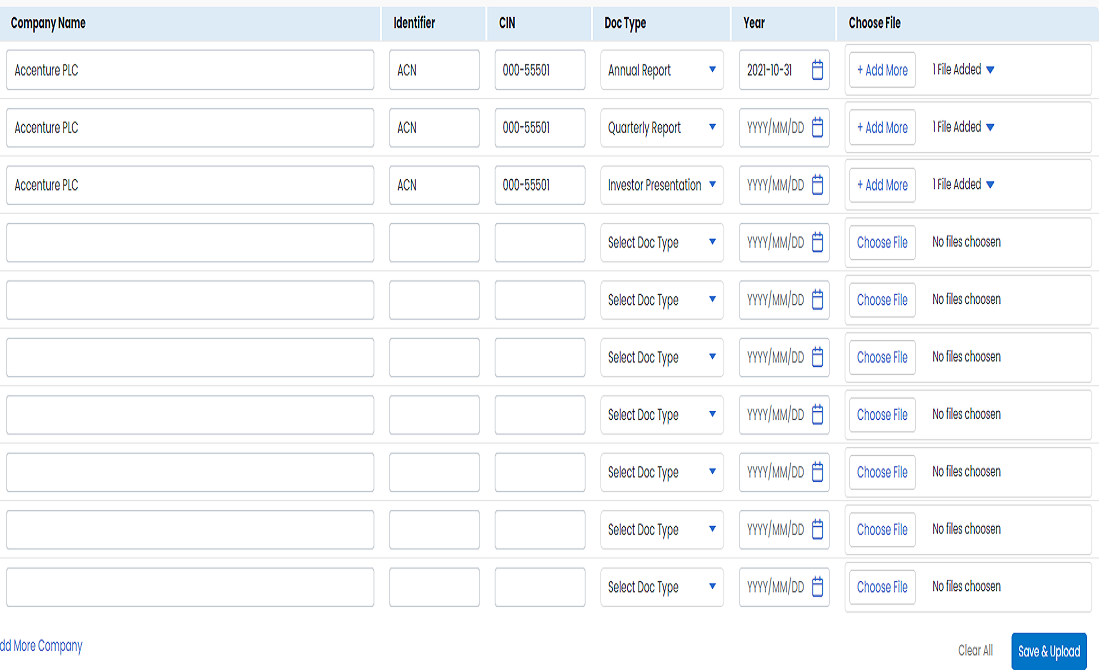 Add new documents at the click of a few buttons. Documents of different formats - such as annual report, investor presentation, rating report - can be added.