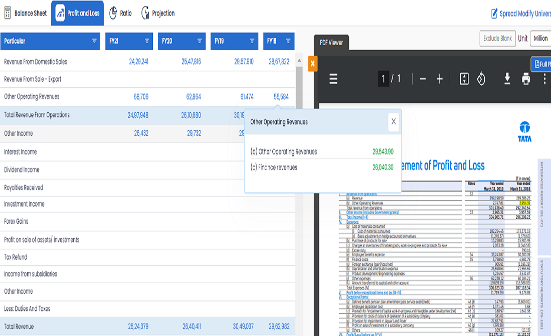 ScaleCred auto-detects not only primary financial statements – P&L and Balance Sheet – but also Notes to Accounts and Schedules, enabling comprehensive data analysis.