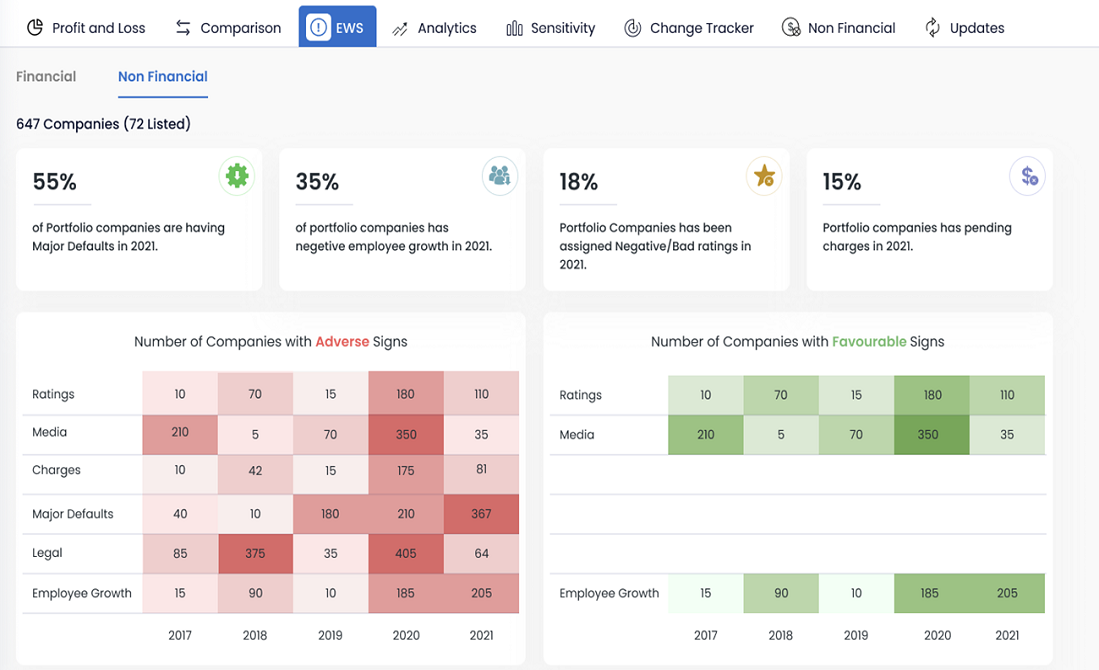 Leverage machine learning and rule-based algorithms to monitor portfolio health through early warning systems (EWS) and other indicators of economic weakness.